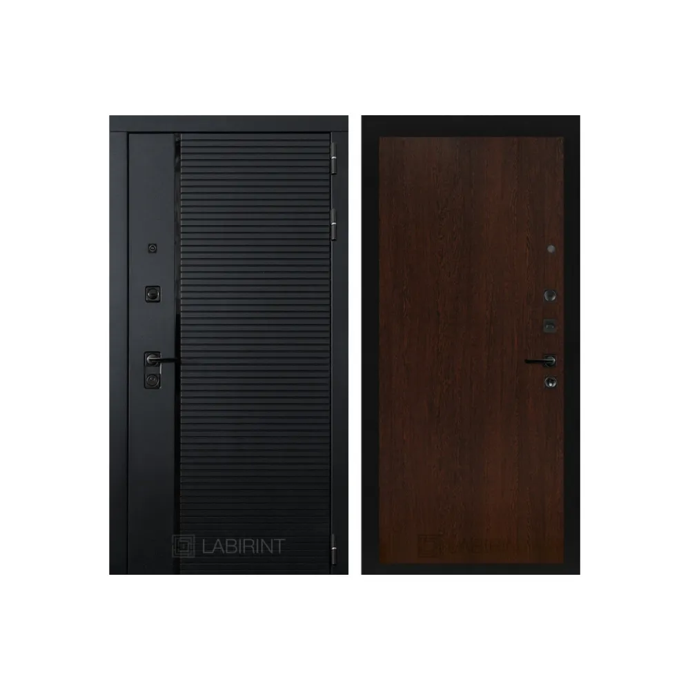 Фурнитура в черном цвете: Броненакладка врезная, накладка со шторкой, глазок , дверная ручка, ночная задвижка. Цилиндр ключ-вертушка Guardian, регулируемый эксцентрик.