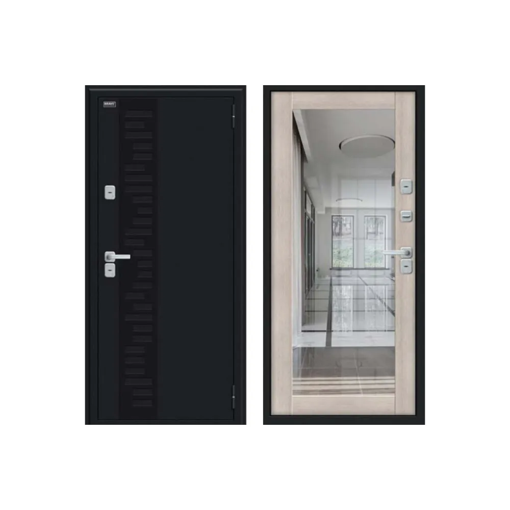 Входная металлическая дверь с терморазрывом Браво Термо Флеш Декор с зеркалом Капучино