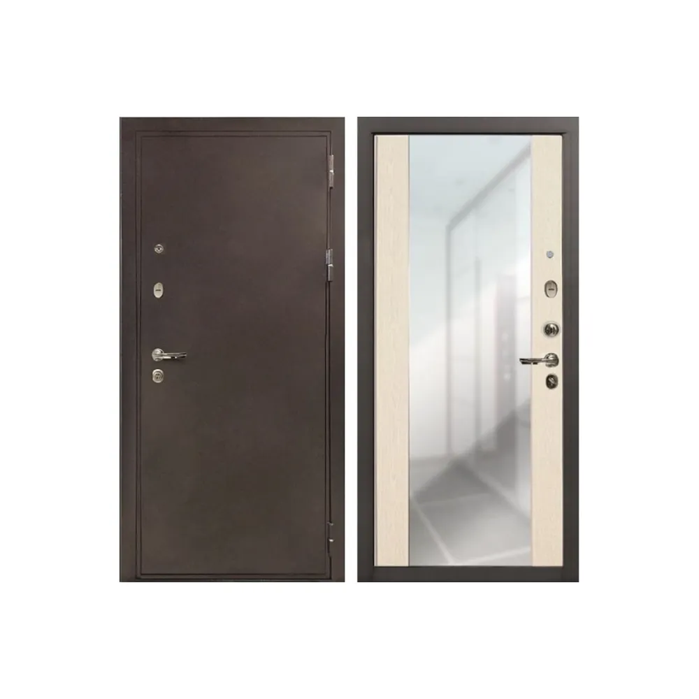Входная металлическая дверь Лекс 5А Цезарь Стиль с Зеркалом Беленый дуб (панель №45)